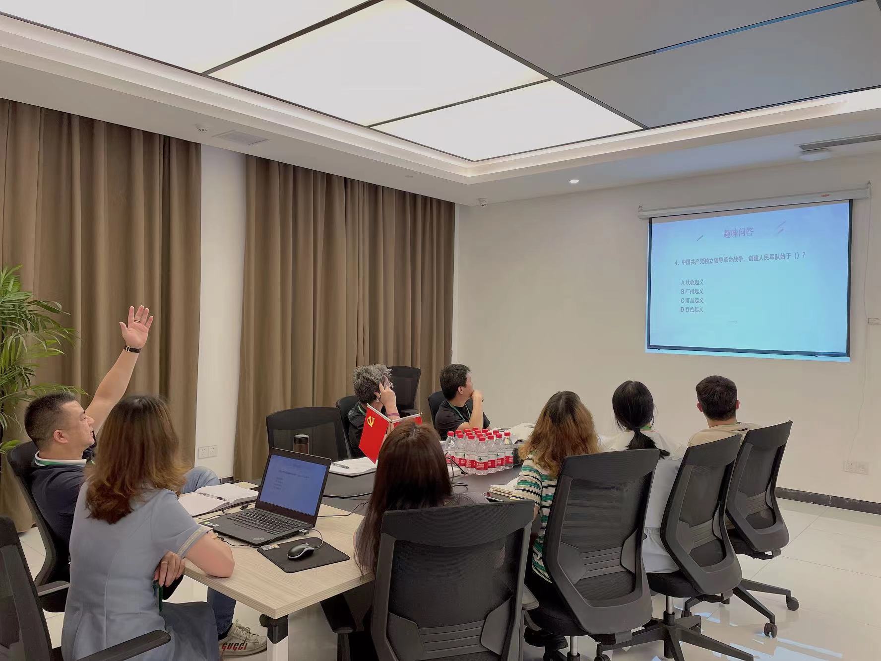 通過(guò)轉(zhuǎn)正預(yù)備黨員儀式、學(xué)習(xí)黨史(包含七一建黨節(jié)的由來(lái)歷程等)、互動(dòng)活動(dòng)、電影《黑狐之絕地營(yíng)救》賞析等環(huán)節(jié)深切祝福黨的101周年華誕,展現(xiàn)宇諾始終堅(jiān)持以高質(zhì)量黨建引領(lǐng)高質(zhì)量發(fā)展的澎湃活力,更好地激勵(lì)黨員干部奮發(fā)努力、勇毅前行,以實(shí)際行動(dòng)迎接黨的二十大勝利召開。